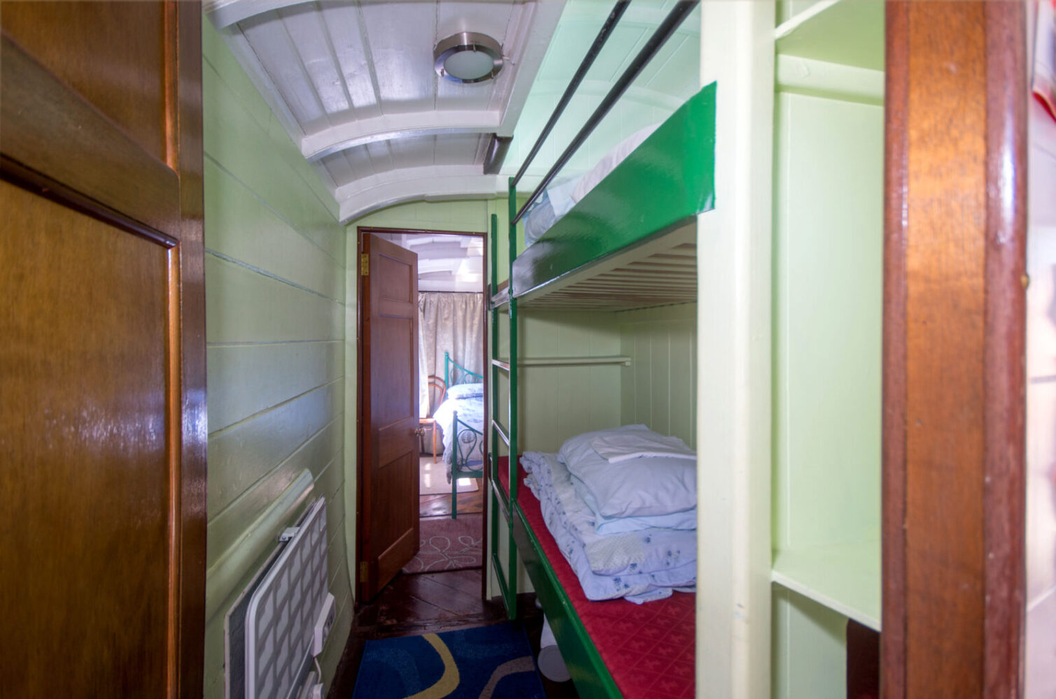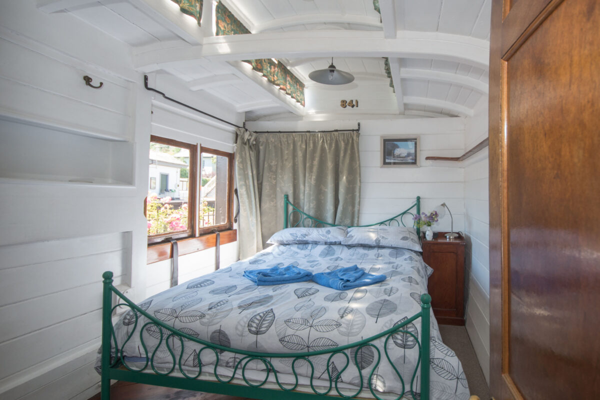 The Travelling Post Office is perfect for single guests, couples and families. It has a double bedroom, two bunks (suitable for children or agile small adults only), plus a double sofa bed in the lounge.