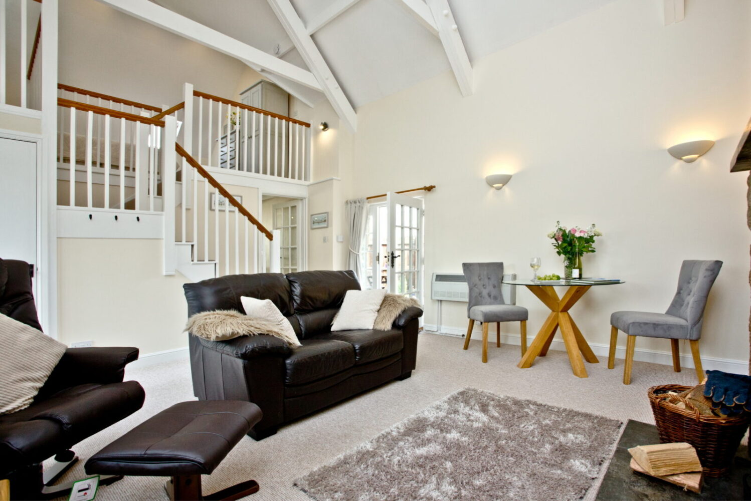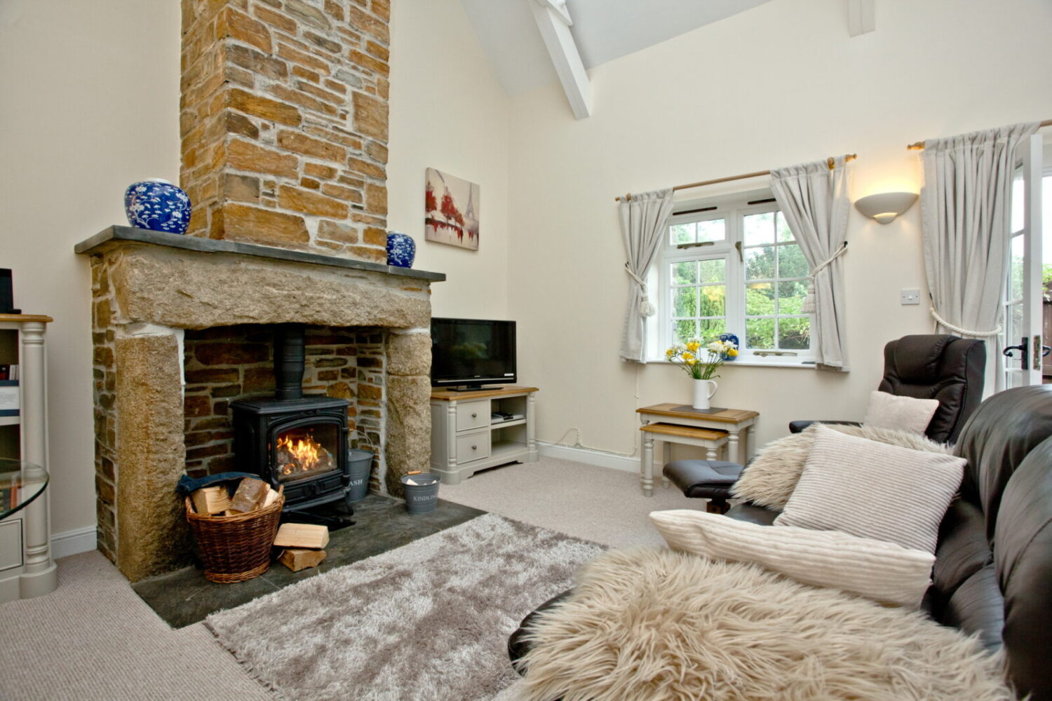 Tikkidew holiday cottage sleeps 2 + cot and is on two levels, with a galleried, open plan bedroom upstairs. Tikkidew has a large lounge with a CD/Bluetooth speaker, smart TV & DVD, and there is a log fire for those cosy evenings in winter. The kitchen is fully equipped with a fridge / freezer, oven / hob, clothes washer, dishwasher and microwave.