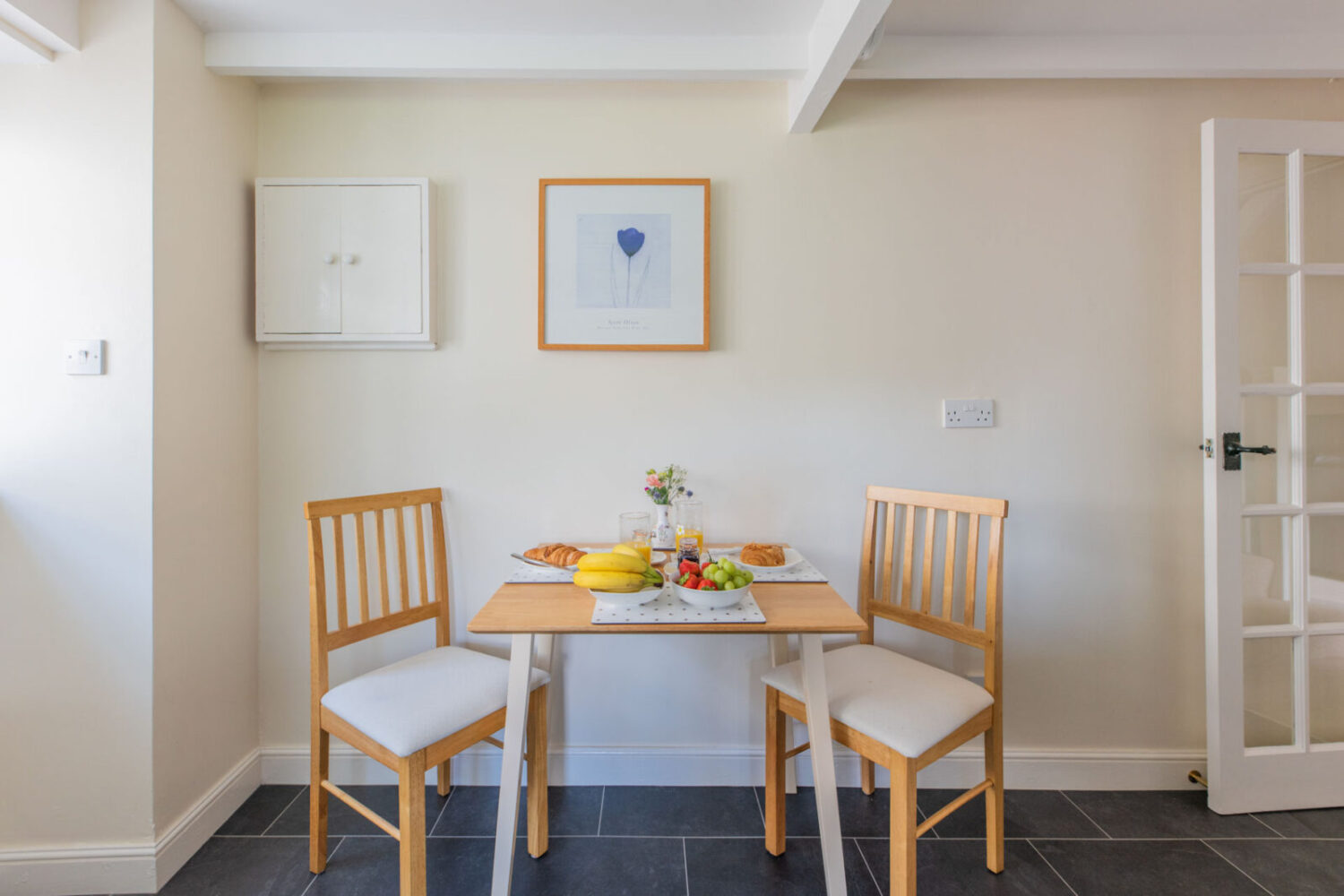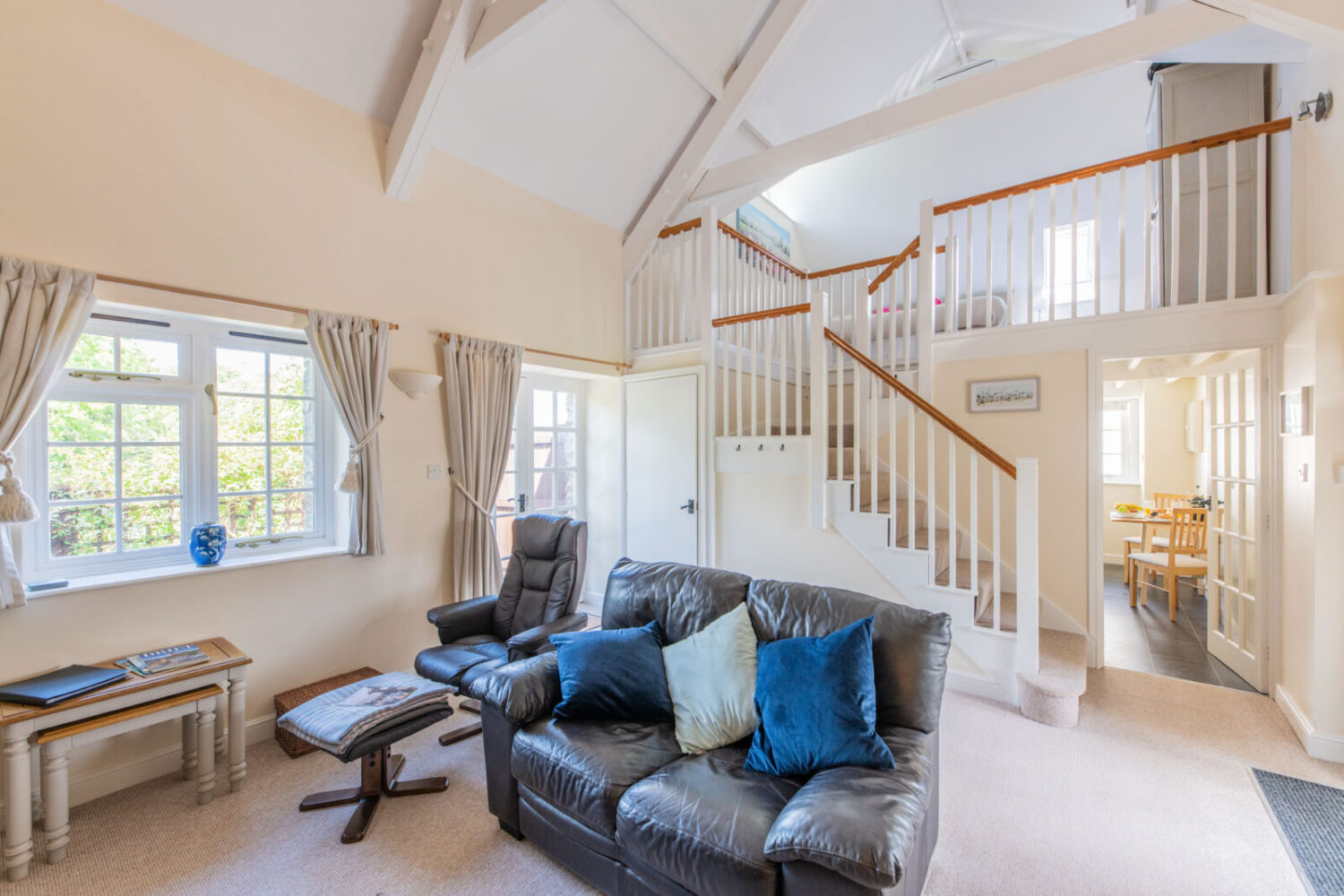 Skyber holiday cottage sleeps 4 + cots. It is a spacious family cottage with two double / twin bedrooms and two shower rooms, one en-suite. The kitchen includes a built in oven / hob, microwave, large fridge / freezer, dishwasher and clothes washer. The lounge has a CD/Bluetooth speaker, digital smart TV & DVD.
