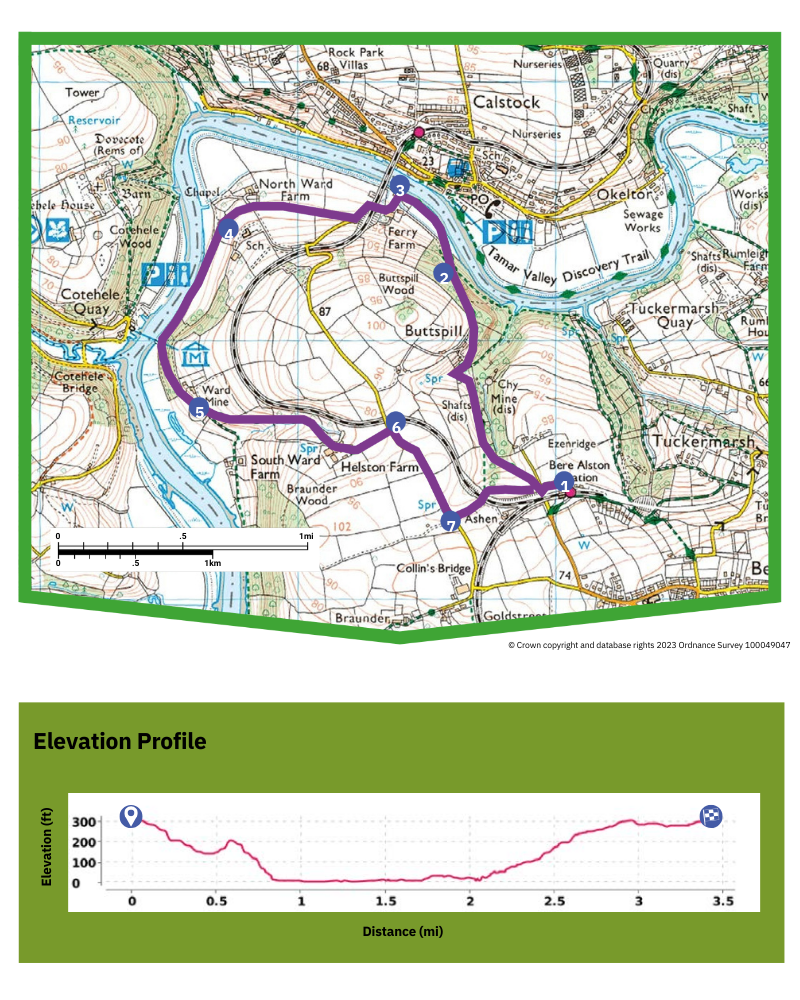 Bere Alston Station to Ward Mine & River Tamar Circular Walk